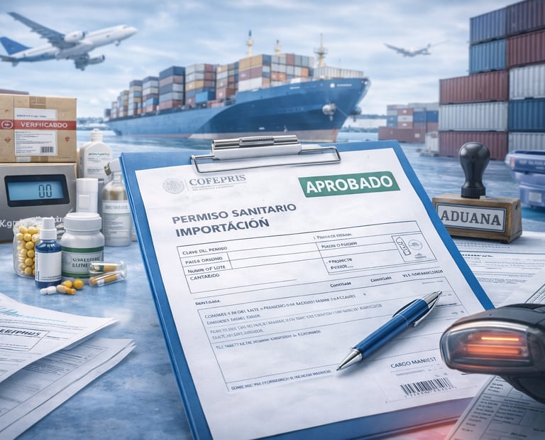 Gestionamos integralmente los trámites de importación de productos regulados, desde la obtención del Permiso Sanitario de Importación hasta la coordinación del proceso de liberación aduanera, asegurando el cumplimiento de las normativas sanitarias y aduaneras